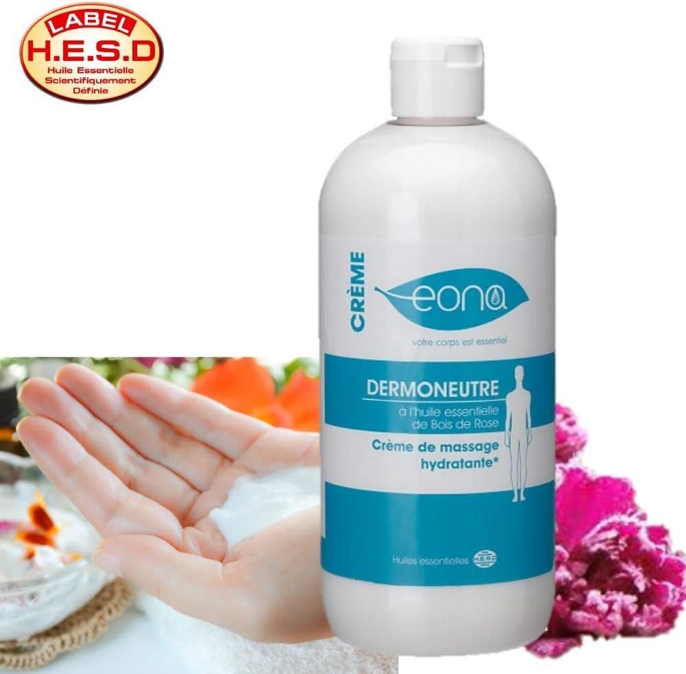 EONA – Crème Dermoneutre 500ml – Hydratante et Aide à la Régénération des Peaux Sèches – Composition Unique dotée d'un Parfum Léger à Base d'Huile Essentielle de Bois de Rose